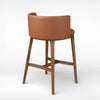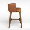 The RedOAK® JAXON is a masterclass in Mid-Century Modern design, featuring a warm cognac leather upholstery paired with a rich, walnut-finished wood frame. Its low-profile, curved backrest provides ergonomic support while maintaining a clean, architectural silhouette that fits seamlessly under kitchen islands or bars. Detailed white contrast stitching along the seams highlights the stool's craftsmanship, adding a tailored touch to its rustic yet refined aesthetic.