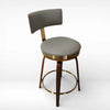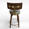 The RedOAK® LEX offers a minimalist take on mid-century luxury, featuring a circular swivel seat and a slim, curved backrest for a lightweight visual profile. Upholstered in a muted slate-grey faux leather, the seat is accented by a bold, polished gold-finished band that adds a touch of glamour to the silhouette. A single gold-toned pillar supports the backrest, seamlessly integrating with the metallic accents found on the base. The stool stands on four tapered walnut-finish legs, reinforced by a striking gold circular footrest that provides 360-degree support. This combination of rounded geometry and mixed materials makes it a versatile choice for contemporary kitchen islands or compact bar areas.