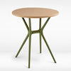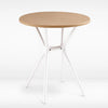 The RedOAK® PERCY contemporary cafe table featuring a distinct design. The table has a circular, tabletop with a subtly textured pattern providing visual interest and grip. It is supported by an architectural base consisting of four slender, splayed legs connected by a central molded hub, giving it a stable yet airy silhouette. Key features include its sturdy, modern aesthetic, a low-maintenance, patterned top, and a lightweight feel due to the slender base. It's ideally used in indoor or outdoor cafe settings, small dining areas, or patios.