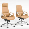 The RedOAK® ROLEX a sleek, modern design that combines comfort with sophistication. Upholstered in a smooth tan finish, they feature plush cushioning with a streamlined silhouette that enhances ergonomic support. Available in both high-back and mid-back versions, the chairs cater to different seating preferences while maintaining a consistent elegant look. The distinctive angular armrests, accented with polished chrome detailing, add a touch of modern luxury. Perfect for executive offices or conference rooms, they bring a refined, professional aesthetic to any workspace.