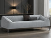 Featuring RedOAK® VISTA features a modern, streamlined silhouette with gently sloping arms that flow seamlessly into the backrest, giving it an elegant, sculptural appearance. Upholstered in a smooth, light grey-toned fabric, it exudes a sophisticated and minimalist aesthetic. The generously sized cushions and slightly curved shape suggest a comfortable yet formal seating experience. It is supported by four slender, tapered dark legs that elevate the piece, enhancing its contemporary design and adding a subtle contrast to the light upholstery. Two dark accent pillows one rectangular and one square are included, providing a dash of color and visual depth.