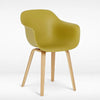 The RedOAK® ABBY is a contemporary armchair that features a sophisticated interplay between industrial and natural materials. It consists of a voluminous, matte molded shell that curves seamlessly to form the backrest and armrests, ensuring an ergonomic and comfortable seating experience. The shell sits atop a sturdy, architectural base made of light-colored, which adds warmth and organic texture to the design. Its minimalist silhouette and clean lines reflect a aesthetic, making it a timeless piece that balances modern functionality with visual elegance.